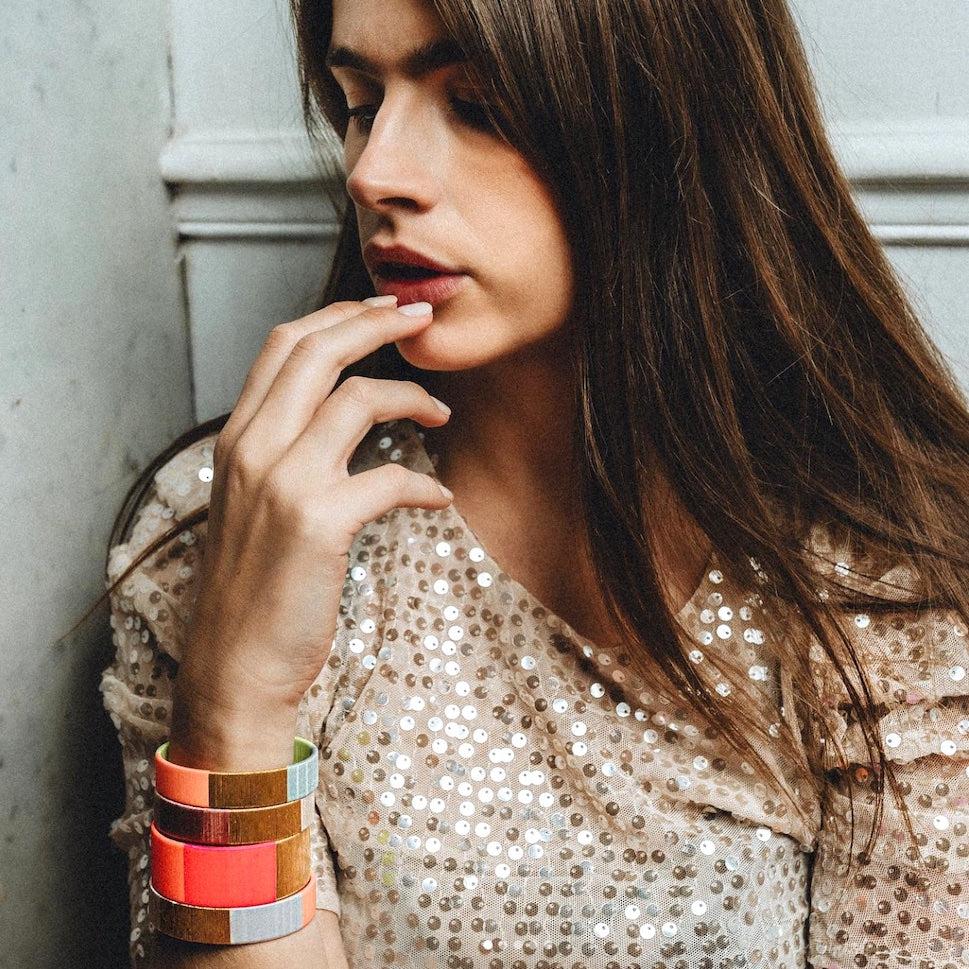 Bracelet résine torsadé or - brique