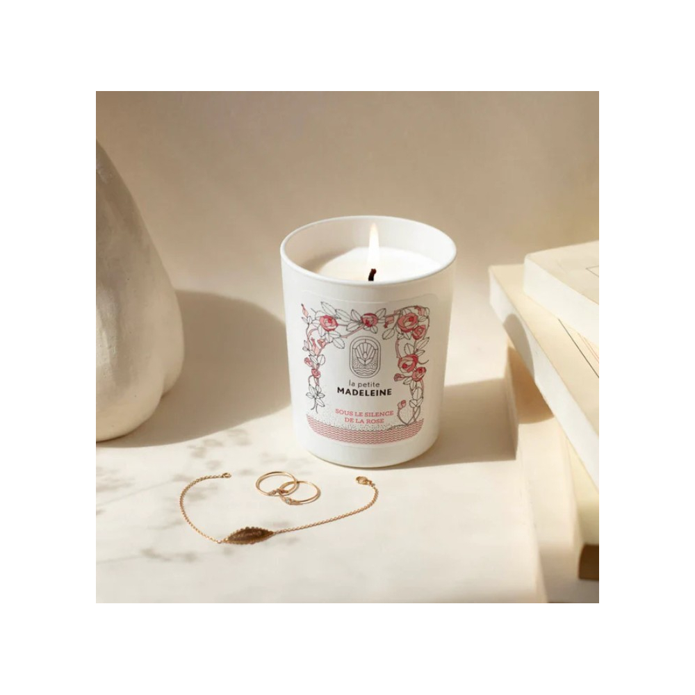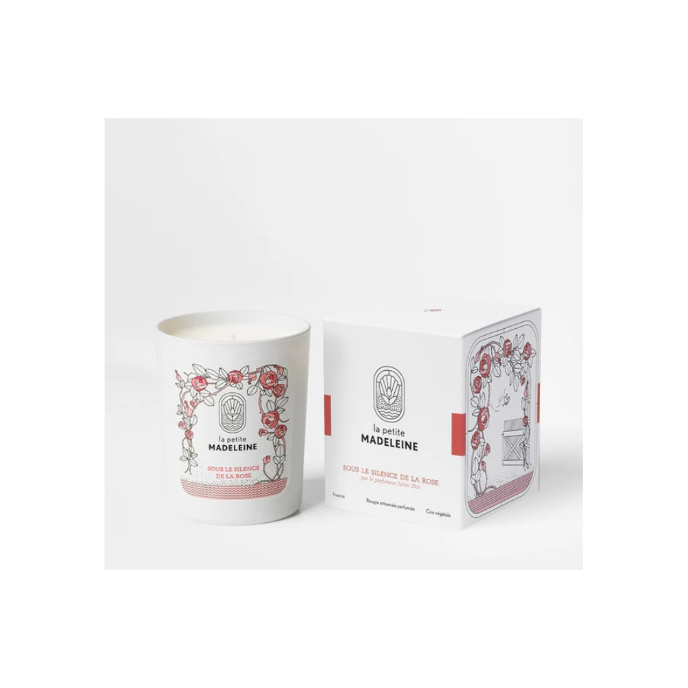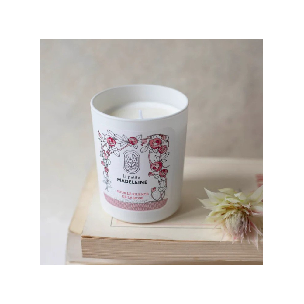 Cette bougie artisanale parfumée est fabriquée à partir de cire végétale au sein de l'atelier de "La Petite Madeleine" à Troyes.
