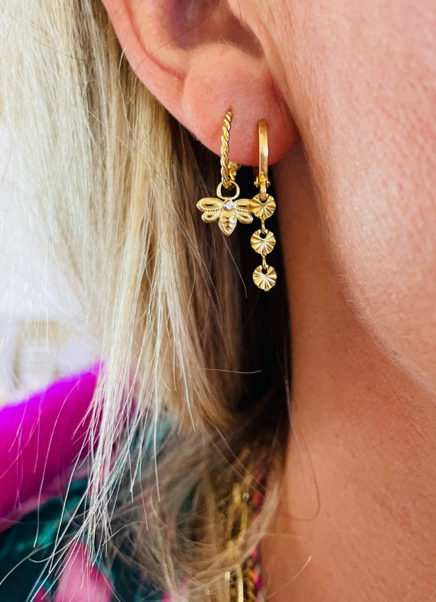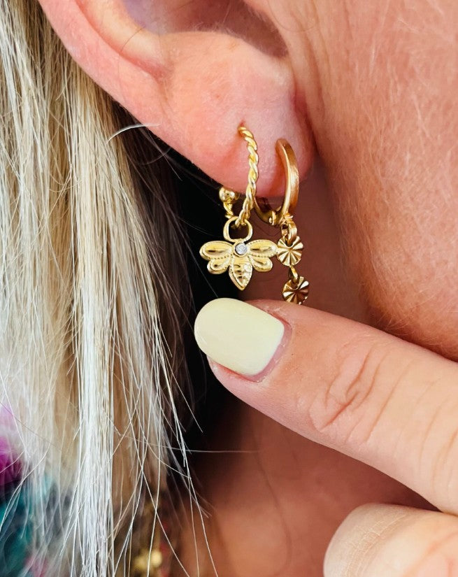 Cette petite créole a été montée en série limitée dans l'atelier de Chouhuihui situé en Belgique. Elle se compose d’acier inoxydable et de zircon transparent. La breloque représente une petite abeille.