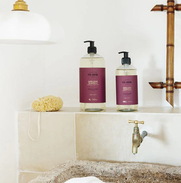 Le Savon Liquide de Marseille Feuilles de Figuier est composé d'huile d'argan et de coco pour prendre soin de la peau de toute la famille.