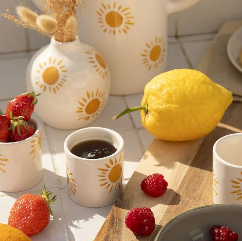 La tasse à espresso Soleil va devenir l'alliée bonne humeur de votre café! Un mini format qui amènera une touche d'été toute l'année.